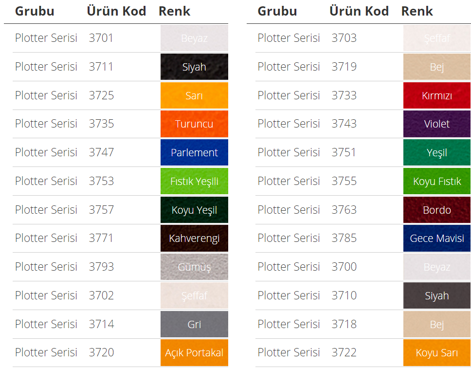 Yüksek kalite pigment ve UV içerikli plotter kesim folyosu olarak üretilmiş,kadmiyum içermeyen monomerik yapıya sahip PVC film’dir. İçeriğindeki özel bileşenler sayesinde kolay kesilebilir ve kesim sonrası rahat ayıklanır.