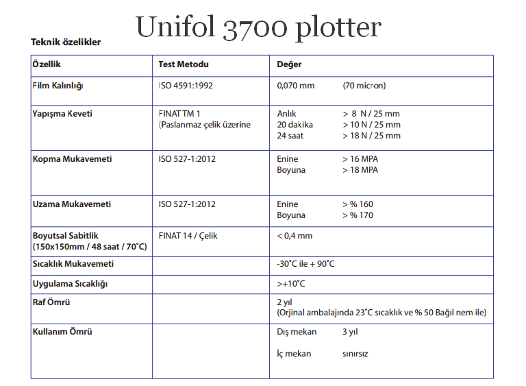 Unifol 3700 kesim folyosunun uygulandığı yerden sökülmesi gerektiğinde iz veya yapışkan bırakmaz.Kolay transfer edilebilir ve uygulama hatalarına karşı kolay pozisyonlanabilir.